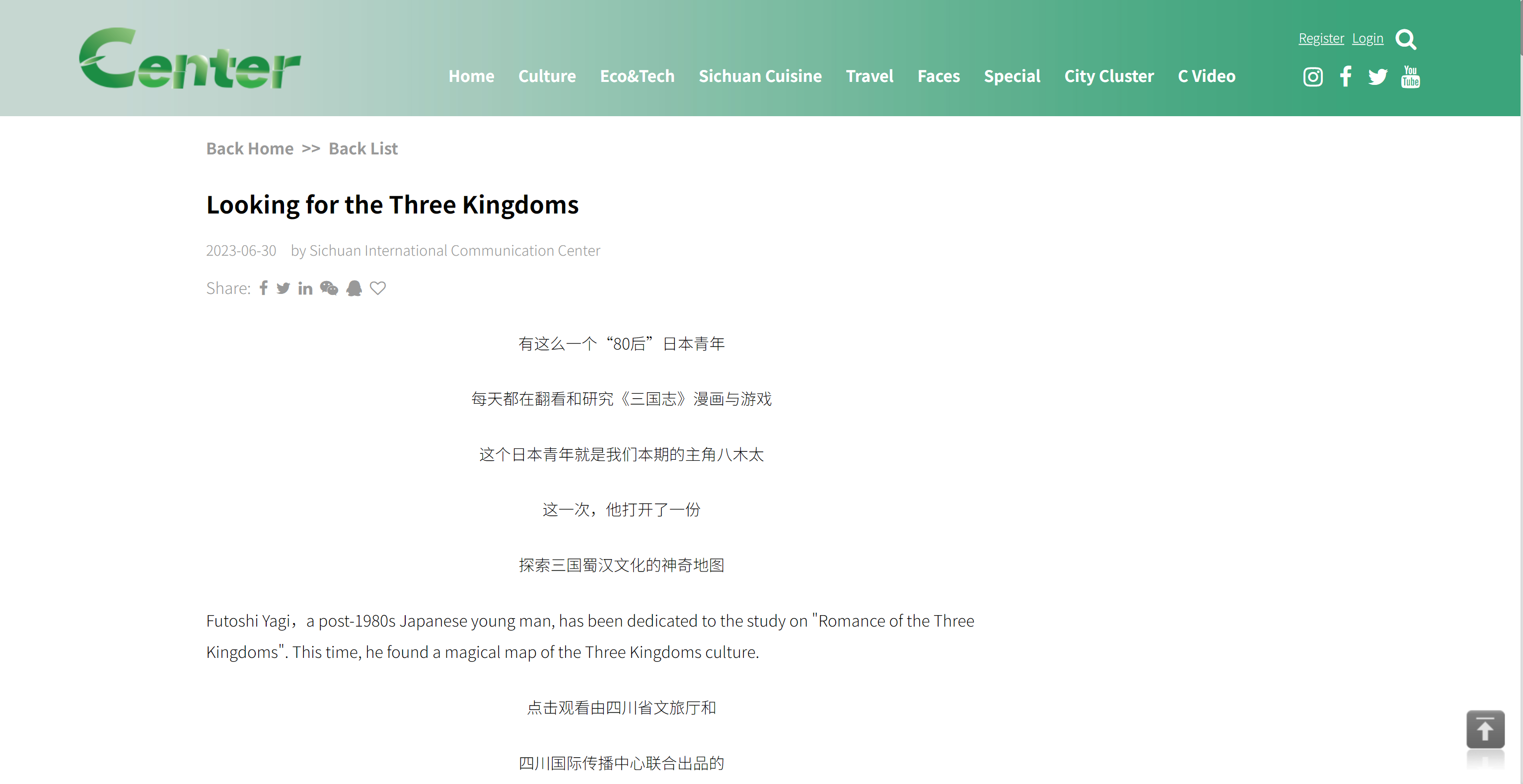1. 国际传播(融合报道):《日本友人蜀国寻踪记Looking for the Three Kingdoms》