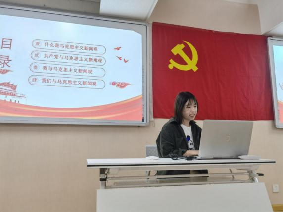 在嘉宾分享环节,来自19级学硕的孙玉珠同学从什么是马克思主义新闻观、共产党与马克思主义新闻观、我与马克思主义新闻观和我们与马克思主义新闻观四个方面向同学们做汇报。孙玉珠同学首先从概念上解读了马克思主义新闻观的具体含义,介绍了马克思主义新闻观的四个主要观念。紧接着又从马克思、列宁到我国的毛泽东等共产党人的新闻事业理论和实践的演变历程介绍了共产党对马克思主义新闻观的诠释和发展。随后,结合自身经历,她从学科融合的角度指出:马克思主义新闻观的实质是新闻观在马克思主义理论体系中的体现,是多种学科、多种理论、多种实践的汇合点。最后孙玉珠同学提到,新传学子、共产党员这双重身份更加赋予了同学们的重大使命和责任,她呼吁大家从认真学习和践行马克思主义新闻观开始,做一名合格的新闻工作者和一名合格的共产党员。