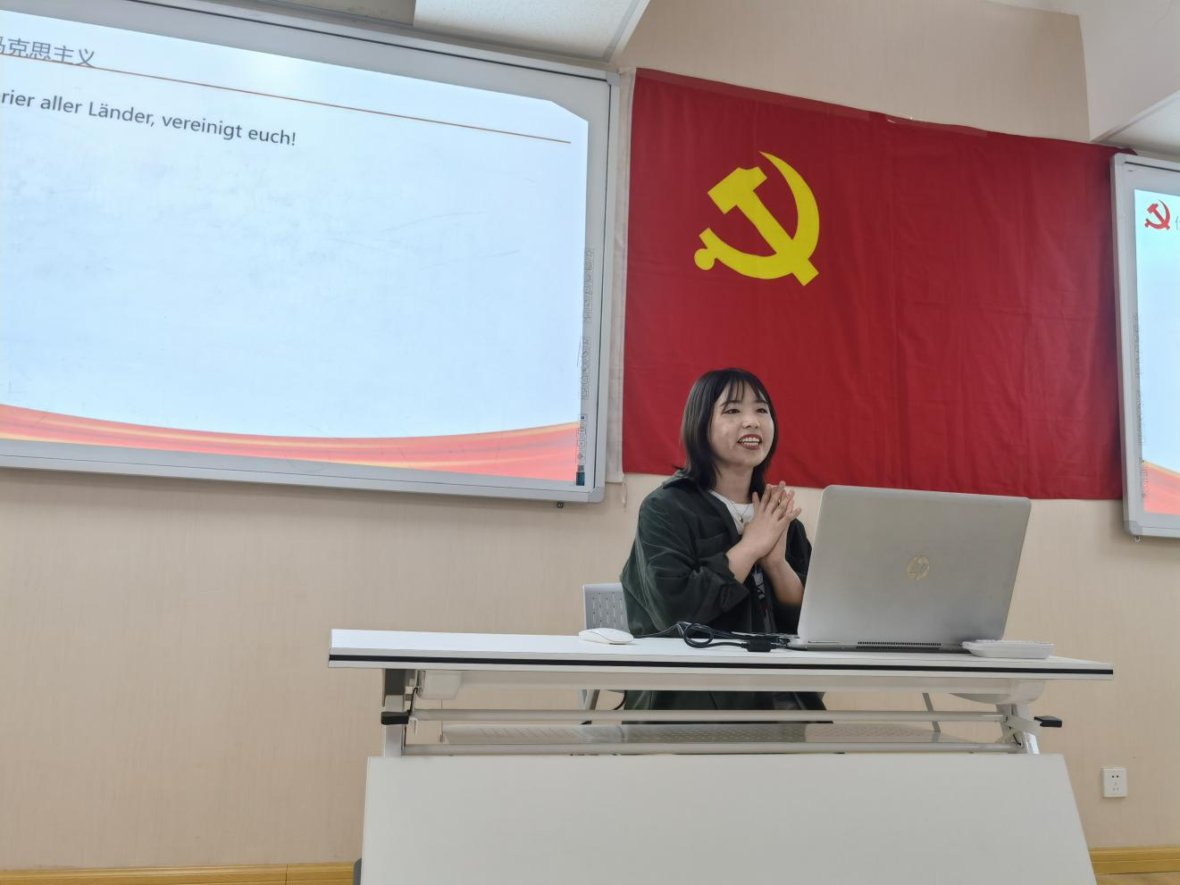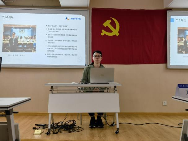 张世文同学则着重从实践的角度讲述了他眼中的马克思主义新闻观。在介绍如何认识马新观的时候,张世文同学结合香港事件和新冠疫情期间的中外新闻报道实例让同学们直观地感受到新闻观对于新闻生产、国家舆论导向的重要意义。有关如何践行马新观的部分,张世文同学结合自身在人民日报社新媒体中心实习的经历,分享马新观应用于新闻生产实践中的实际感受。首先要以喜闻乐见的形式,传播主流声音;要坚持正确舆论导向,提高政治站位;还要对外传递好中国声音,讲好中国故事;而提到对马新观的感悟时,张世文同学说:马克思主义新闻观并不是空中楼阁,而是发生在我们身边的实实在在的变化的汇集和体现。而我们所经历的百年未有之大变局,其实就是生活中每个平凡人的面对困难或机遇时的抉择和点滴细节。