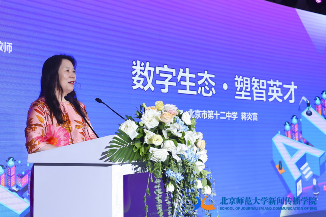 蒋炎富带来了主旨演讲《数字生态·塑智英才》。她提到,数字生态环境会塑造一个怎样的青少年样态,教育应该以怎样的模态健康有效的介入,以促进可持续的未来发展形态,这是国家未来发展之问,也是全球命运趋向之问,更是我们基础教育的原初之问。她认为,身处AI时代,作为教育者,要解决“我们应该继续做什么,应该抛弃什么,需要创新什么”这三个教育的基本问题。作为青少年,应该具备对立统一、去伪存真,在不确定中确定的思维和素养,既能发挥数字技术的可为,也能切入数字技术的不可为,来创造数字生态。她提出数字时代瞬息万变,未来数字社会的形态,未来人才的样态,未来教育的模态,三者之间的逻辑趋势和关联走向,成为新的时代的教育思考。
