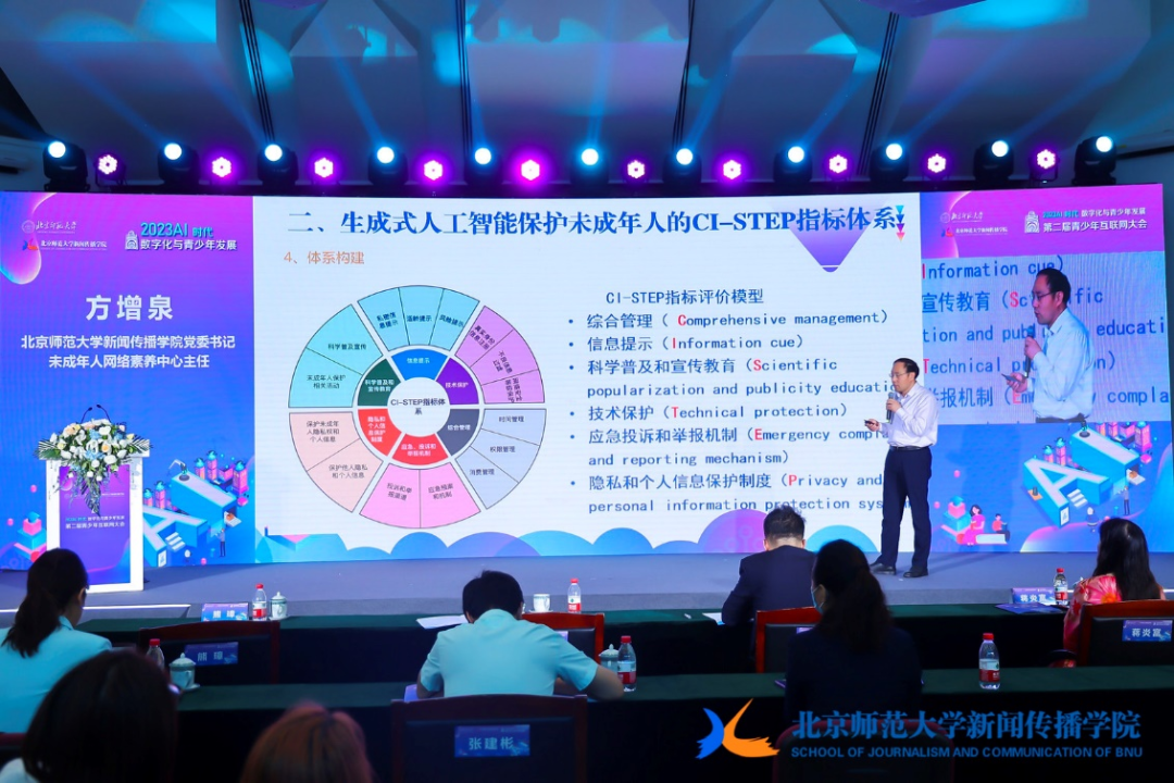 方增泉发布了《生成式人工智能未成年人保护和发展评估指标体系》。他提出,该指标一共分为六个维度,第一个是综合管理,包括时间管理、权限管理、消费管理也是非常迫切的一个解决的问题。第二个是信息提示,包括风险提示、适龄提示、私密信息提示三个层次。第三个是强调科学普及和宣传教育,提出了对生成式人工智能企业的期望与要求。第四个是技术保护,技术保护的核心就是真实身份的信息注册,进行不良信息的过滤。第五个是应急投诉和举报机制,完善投诉和举报机制。第六个是隐私和个人信息的保护。他提出,该指标具体有三个要求,第一落实安全审查的标准,第二重点关注未成年人的风险,第三投入市场之前,要进行明确的评估风险,确保风险可控。他认为,生成式人工智能的发展应保护和促进未成年人的权益,促进未成年人的成长,应避免剥夺和损害未成年人的权利,真正助力实现未成年人的健康成长。