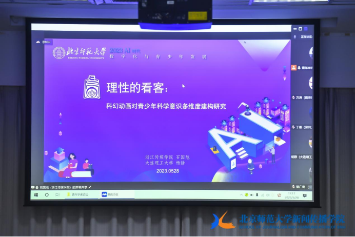 浙江传媒公司硕士研究生石国旭与大连理工大学研究生杨静分享论文《科幻动画对青少年科学意识的建构》,研究发现科幻动画对于青少年来说作为一种消遣和放松的方式,在科学知识学习和吸收方面存在积极影响;同时他们对于科学动画在意识层面具备思辨意识和反思行为,可被描述为是理性基础之上的积极和保守。