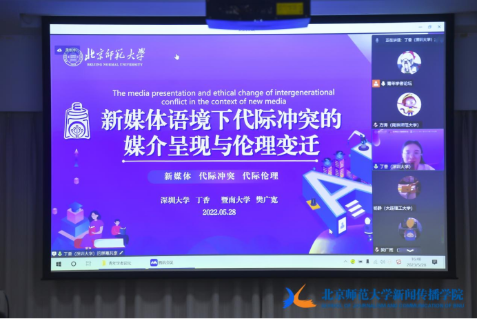 深圳大学硕士研究生丁香与暨南大学硕士研究生樊广宽分享论文《新媒体语境下代际冲突的媒介呈现与伦理变迁》,提出数字化代际冲突中代际之间的互动呈现出“年轻世代得权,年长世代去权”的基本格局,年轻世代通过设置身份、话语和道德价值观藩篱来区隔、排斥年长世代,而年长世代在互联网场域中则面临着缺席失语以及被“他者”表达和书写的被动境地。“长者本位”的传统伦理观在数字化浪潮的冲击下濒临破产,年轻世代的平权意识不断增强。