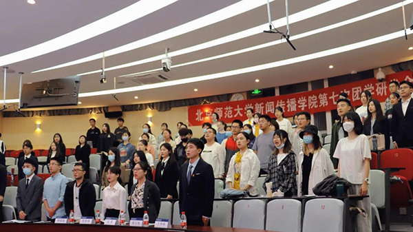 晚上六点,团学研代会在庄严的国歌声中拉开序幕。