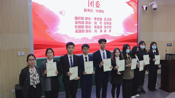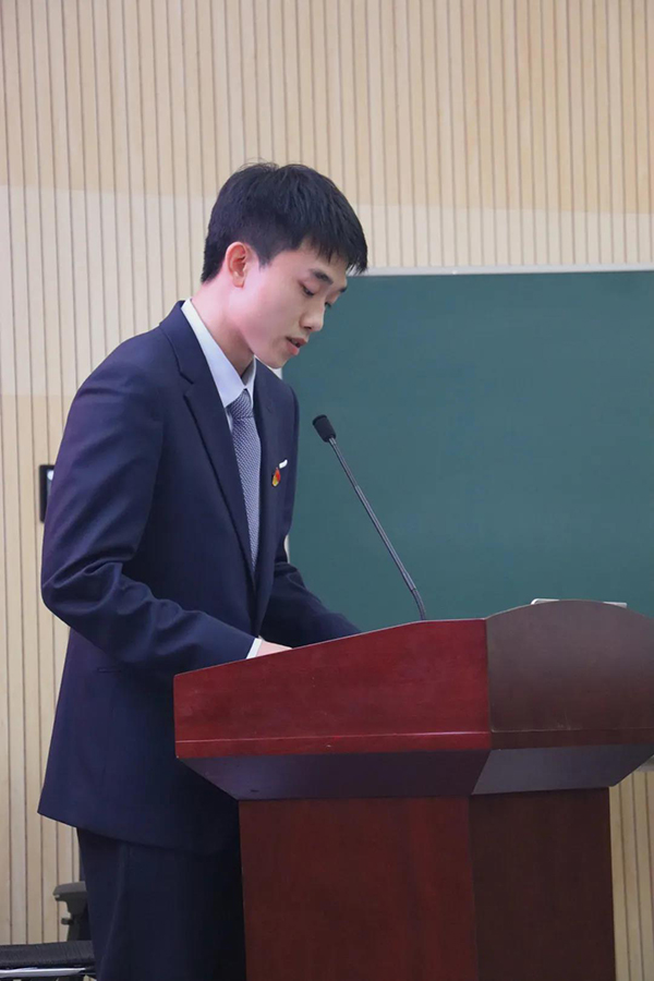 校员工会主席团成员王华林、校研究生主席团成员彭紫荆分别代表校员工会与校研究生会致辞,回顾了一年来员工会和研究生会全体成员在员工工作上所取得的重要成果以及付出的殷勤努力,希望在接下来的一年内,新一届团学组织可以直面突出问题,坚持改革创新,凝聚广大同学力量,继续开展符合院系特点的优质活动,更好地为同学们服务。
