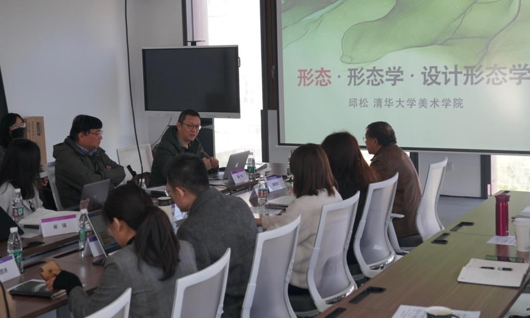 随后,清华大学美术公司邱松教授为在场的老师和同学们做了设计形态学的报告。邱教授在报告中阐述了设计形态学这一交叉学科的形成和学科界定,此外,他还对设计形态学在应用和理论方面的研究范畴与逻辑关系进行了系统化的模型阐释。