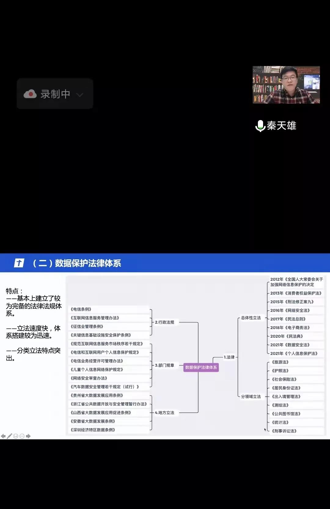 腾讯研究院的秦天雄研究员提出了对大数据时代网络安全与隐私保护的五点思考。第一,应更为均衡地处理安全与发展的协同问题,使其达到一种平衡;第二,当前时代网络安全的突出表现为数据安全,由数据本体的安全拓展到受数据影响的其他利益主体的安全;第三,保护隐私就是保护人的尊严,但应避免将隐私保护与个人信息保护相混同;第四,我们应保持对国际发展的持续关注,更好地利用数据来发展自己;第五,要不断提升安全合规,加强对个人信息的保护,将企业实践的合规清单细化并落实。最后秦天雄研究员介绍了腾讯的一站式数据合规方案,使在场同学对数据收集保护的工作流程有了较深的理解。