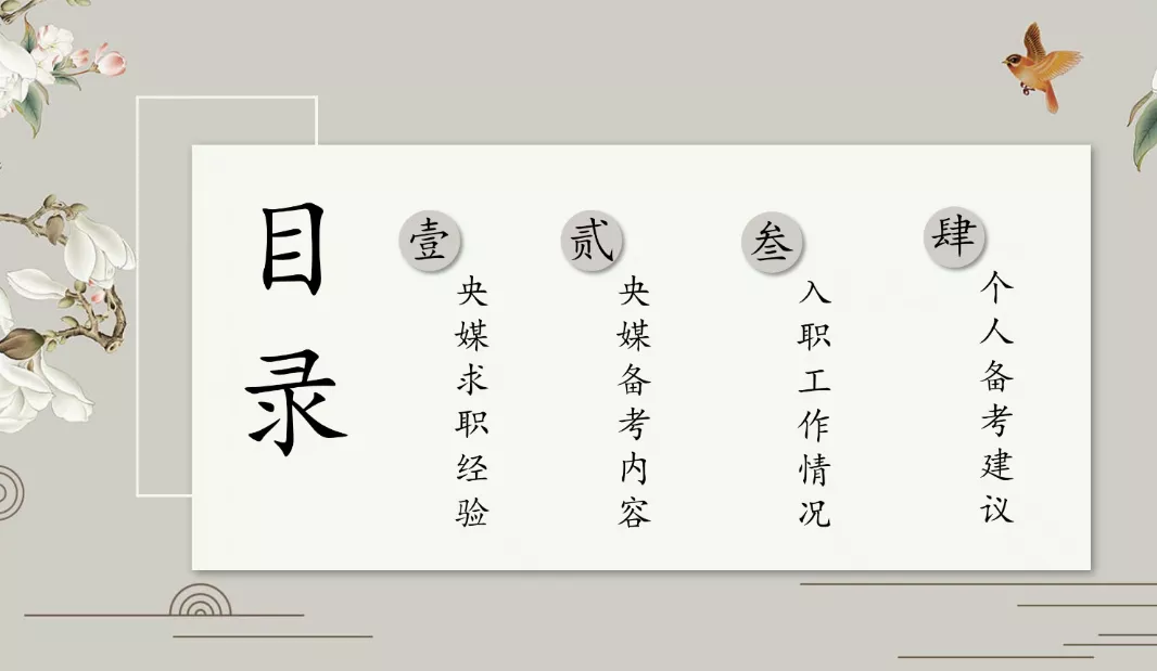 美莹师姐主要从央媒求职经验、央媒备考内容、入职工作情况、个人备考建议展开演讲,分享了自己的宝贵经验。