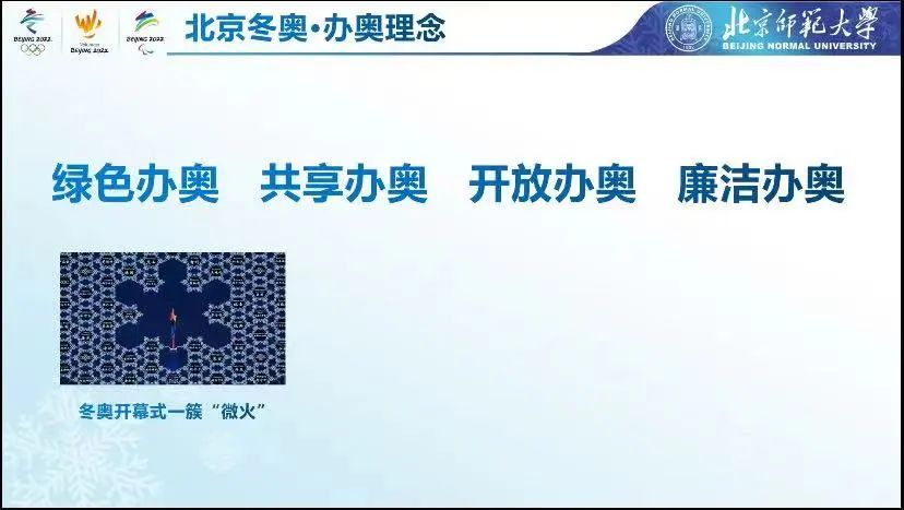 首先,地理科学学部2018级本科生蔡周迁吉向我们介绍了一些冬奥相关的知识,包括办奥理念、吉祥物冰墩墩和雪容融、冬奥体育场馆等。