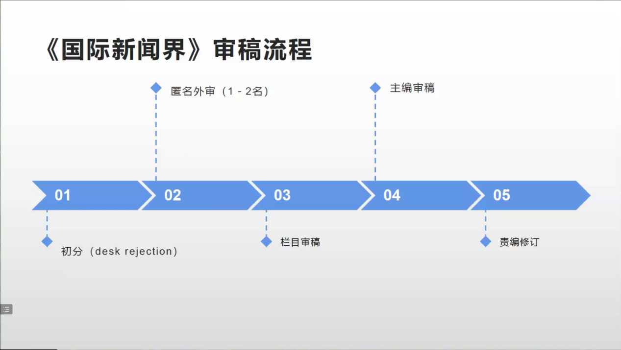 在对学术期刊发表流程上,刘海龙老师认为,目前的审稿流程还是有待完善的。就目前的流程来说,《国际新闻界》分为了初分、匿名外审、栏目审稿、主编审稿以及责编修订。