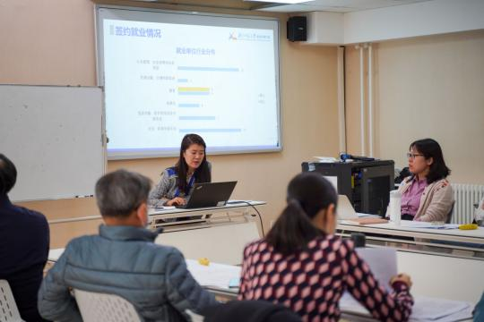 会议伊始,祁雪晶老师汇报了2021届毕业生就业情况。2021年,yl23455永利集团共有本科毕业生32人,硕士毕业生48人和博士毕业生6人(不包含港澳台员工和职工)。其中,本科生以升学和就业为主,硕博毕业生整体以签约就业为主,就业率达到100%。祁雪晶老师指出,要根据就业责任清单严格落实公司、学工办及毕业班班主任就业工作责任,通过摸排针对性了解毕业生就业困难,实施分类指导、精准帮扶。另外,祁雪晶老师还提到,就业要实行“1+2+5”包干制度,即一对一指导1次、谈心谈话2次、推荐适配岗位5个;建立帮扶群,帮助考研失利、公招成绩不理想的同学转赛道寻找其他就业机会;要重点关注本科班就业困难情况与专硕班同学的就业心理,对部分同学进行一对一指导。