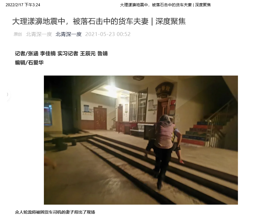 鲁靖-《大理漾濞地震中,被落石击中的货车夫妻》