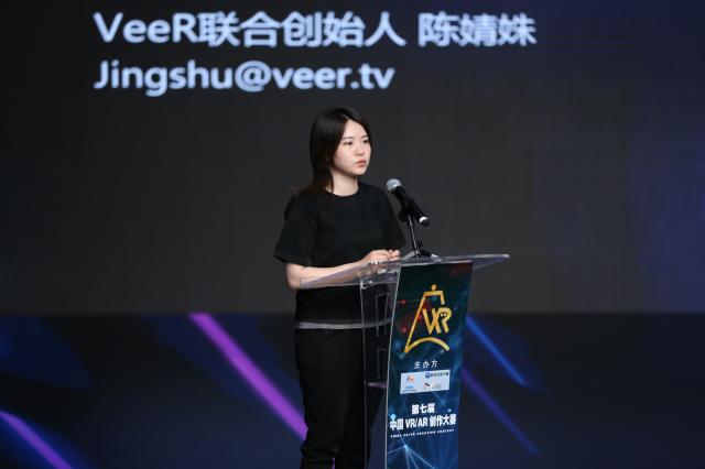 VeeR VR联合创始人陈婧姝作了题为《从戛纳XR看全球VR内容发展趋势》的主旨演讲。她希望与本届活动一同合作,努力为更多国产作品提供内容出海的机会,让中国的VR内容走向国际舞台。