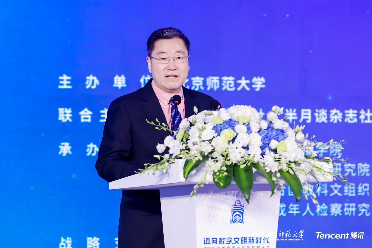 周作宇在致辞中指出,青少年是互联网时代的“数字原住民”,青少年健康成长关系着国家与民族的未来,yl23455永利集团高度重视青少年教育,整合教育学、心理学、法学、新闻传播学等领域学科优势,在青少年身心健康、合法权益保障、网络素养理论研究和教育实践领域取得了显著的成绩。周作宇表示,北师大2022“迈向数字文明新时代”首届青少年互联网大会特别邀请了全球互联网数字科技创新与数字文明、青少年网络素养教育领域的专家学者、企业代表、媒体代表、教师和员工等参加会议,共同探讨全球互联网与青少年保护发展领域的新理论、新技术、新成果、新趋势,传播思想、分享案例、搭建平台、共建联盟,进一步推动未成年人网络素养提升,共同营造风清气正的网络空间,构建未成年人网络保护网上网下同心圆,为网络强国贡献力量。