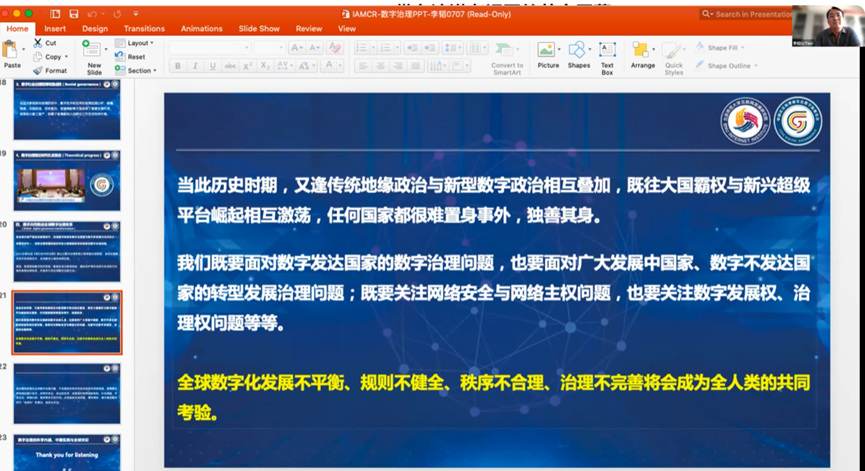 李韬教授结合不同国家的文化背景,以跨学科的方式向与会者展示数字治理的定义、概念框架和治理原则。