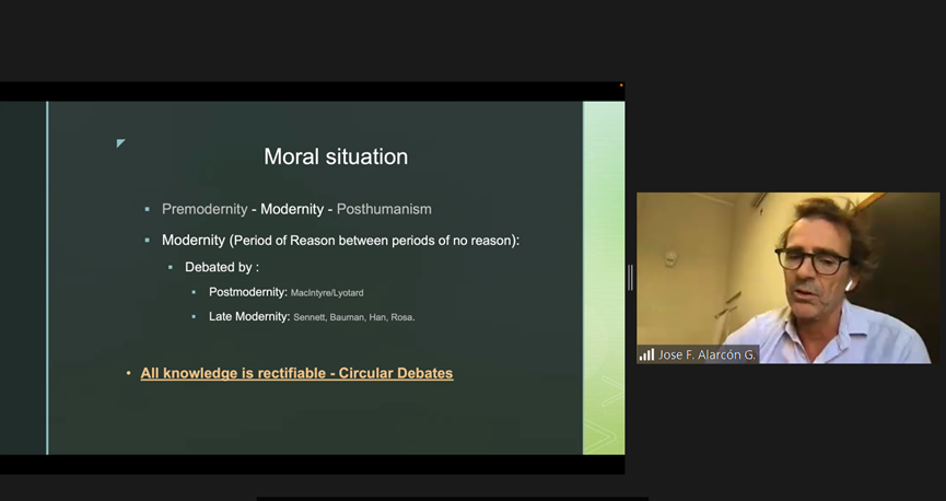 Alarcón博士讨论了数字世界的道德伦理和现代性等新特征。他提出了一种新的策略,即通过收集声音来达成共识。