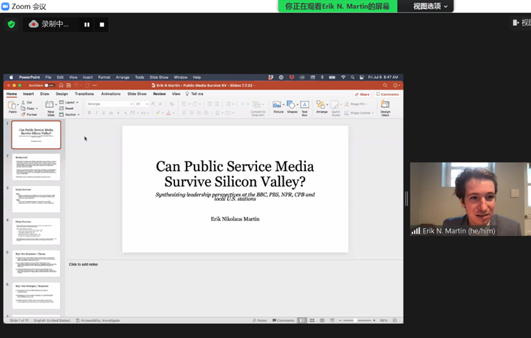 本次IAMCR 前会由yl23455永利和IAMCR 公共服务媒体政策工作组主办,邀请了17位国际学者,围绕新全球化、数字化和平台化等主题,探讨数字传播技术的发展和使用中出现的政策和治理模式,及其对跨文化传播的影响。