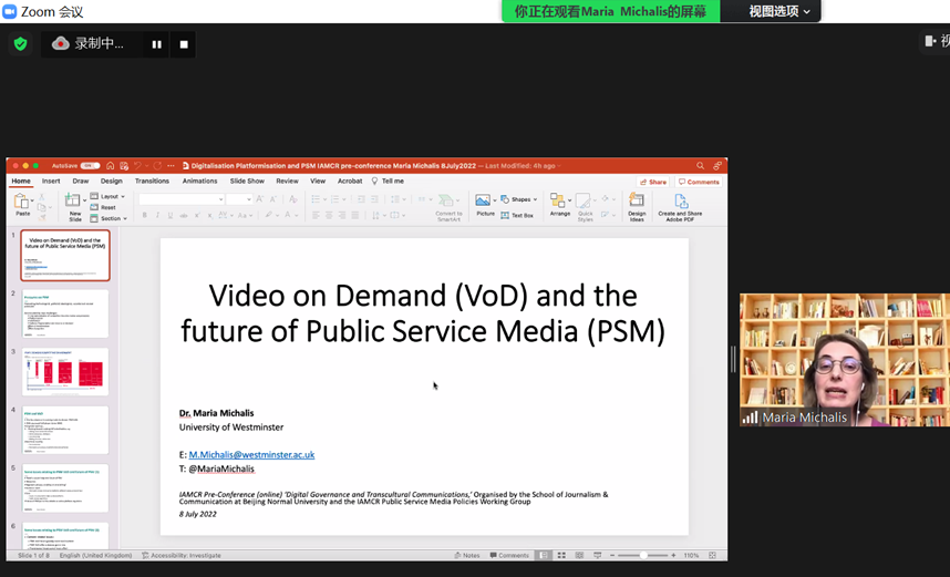 Fiona Martin教授介绍说,IAMCR 公共服务媒体政策工作组是一个由媒体和传播研究领域的优秀研究人员组成的全球性专业组织。IAMCR公共服务媒体政策工作组的目标是促进全球的媒体和传播研究,解决社会政治、技术、政策和文化进程中出现的问题。该小组对互联网和跨文化传播的高度关注,因为这些议题与公共服务媒体的未来息息相关,有利于应对潜在受众多样性的问题。我们可以把这次会议的召开看作是这种国际合作和跨文化交流正在发生的佐证。