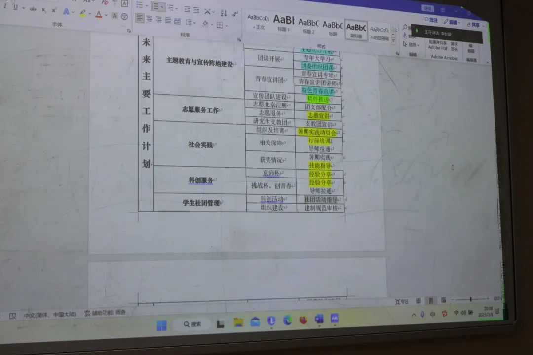 此外,每周团课“青年大学习”的推进也引发了团支书们的热烈讨论。为激发各团支部团员同学们的参与热情,各团支部书记纷纷提出建议,如以链接形式简略点击过程、用创意文案吸引同学们积极参与等,更好地组织引导团员青年深入学习、宣传、贯彻习近平新时代中国特色社会主义思想和党的二十大精神。